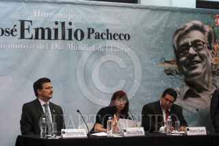 GUADALAJARA, JALISCO, 20MARZO2014.- Esta mañana en las instalaciones de las oficinas de la Feria Internacional del Libro en Guadalajara, se llevo a cabo una conferencia de prensa en la que se dieron a conocer los detalles de la lectura en voz alta a celebrarse el próximo Día Mundial del Libro en la Rambla Cataluña de esta ciudad y en donde se rendirá homenaje con la lectura de la obra del escritor mexicano José Emilio Pacheco quien falleció el pasado 26 de enero. La conferencia fue encabezada por el Rector General de la Universidad de Guadalajara, Mtro. Itzcóatl Tonatiuh Bravo, Marisol Schulz Manaut, Directora General de la FIL Guadalajara y Ricardo Duarte, Secretario de Cultura de Guadalajara. FOTO: FERNANDO CARRANZA GARCIA /CUARTOSCURO.COM