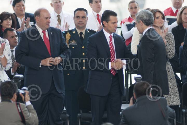 MÉXICO, D.F., 20MARZO2014.- María de los Angeles Aldir; Angélica Rivera de Peña; y Carlos Slim Domit, acudieron a la puesta en marcha de la colecta anual de la Cruz Roja Mexicana en el zócalo capitalino. FOTO: IVÁN STEPHENS /CUARTOECURO.COM