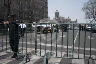 MÉXICO, D.F., 20MARZO2014.- Las calles aledañas a la Plaza de la Constitución fueron cercadas por el estado mayor presidencial durante a la puesta en marcha de la colecta anual de la Cruz Roja Mexicana. FOTO: IVÁN STEPHENS /CUARTOECURO.COM