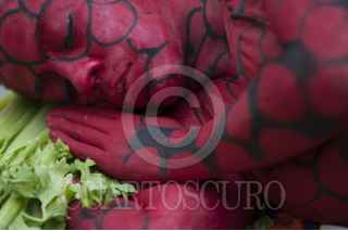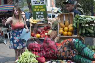 MÉXICO, D.F., 20MARZO2014.- Integrantes de la organización Anima Naturalis realizaron una protesta en la que invitaron a la población a no consumir productos de origen natural en el cruce de las calles Génova y Hamburgo de la Colonia Juárez FOTO: IVÁN STEPHENS /CUARTOECURO.COM