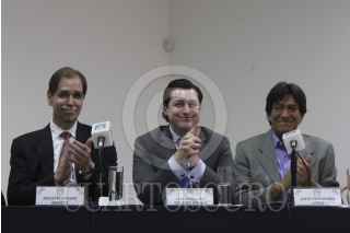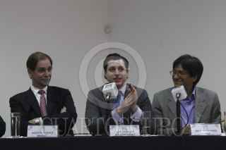 MÉXICO, DF., 20MARZO2014.- Agustín Basave Benítez, Luis Donaldo Colosio Riojas y Julio Hernández López, durante la presentación del libro "Colosio, cuando el espejismo se rompió" de Alfonso Durazo Montaño, en Casa Lamm. FOTO: SAÚL LÓPEZ /CUARTOSCURO.COM