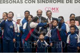 MÉXICO, D.F., 21MARZO2014.- Miguel Ángel Mancera, jefe de gobierno capitalino, y Arturo Kemchs, Director de la Fundación Arte Down en México, encabezaron la conmemoración por el día mundial de las personas con Síndrome de Down en el Palacio del Ayuntamiento. Decenas de niños con este padecimiento asistieron al evento para presentar su trabajo que realizan en dicha fundación. FOTO: DIEGO SIMÓN SÁNCHEZ /CUARTOSCURO.COM