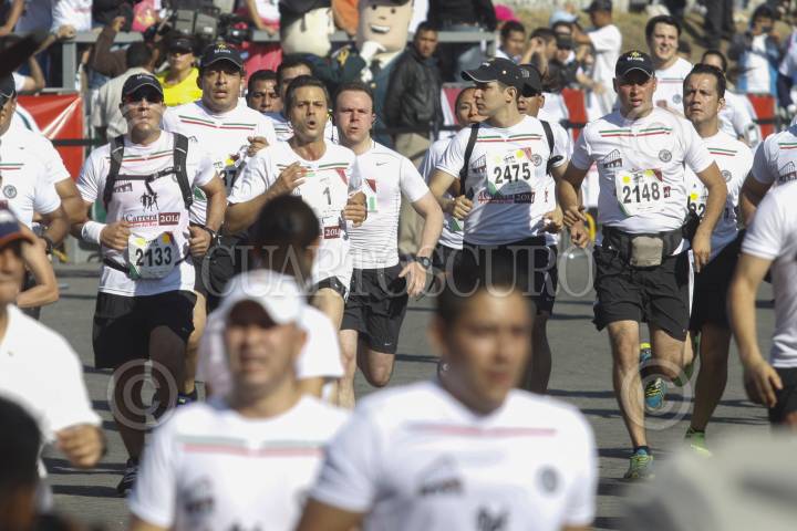 MÉXICO, D.F., 22MARZO 2014.- Roberto Miranda, Jefe del Estado Mayor y Enrique Peña Nieto, Presidente de México, encabezaron la carrera Molino del rey en el Bosque de Chapultepec. El Jefe del ejecutivo hizo en 53 minutos la carrera que organiza el Estado Mayor Presidencial; el año pasado hizo un tiempo de 54 minutos. En la imagen el Jefe del Ejecutivo se tomo la foto con los ganadores de las diferentes categorías. FOTO: MOISÉS PABLO /CUARTOSCURO.COM