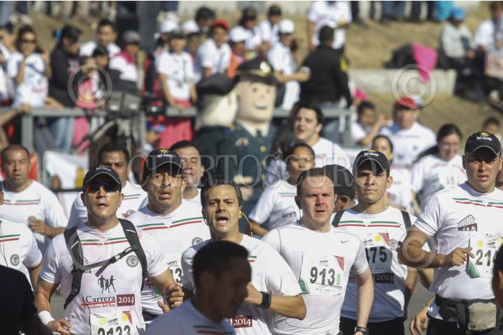 MÉXICO, D.F., 22MARZO 2014.- Roberto Miranda, Jefe del Estado Mayor y Enrique Peña Nieto, Presidente de México, encabezaron la carrera Molino del rey en el Bosque de Chapultepec. El Jefe del ejecutivo hizo en 53 minutos la carrera que organiza el Estado Mayor Presidencial; el año pasado hizo un tiempo de 54 minutos. En la imagen el Jefe del Ejecutivo se tomo la foto con los ganadores de las diferentes categorías. FOTO: MOISÉS PABLO /CUARTOSCURO.COM