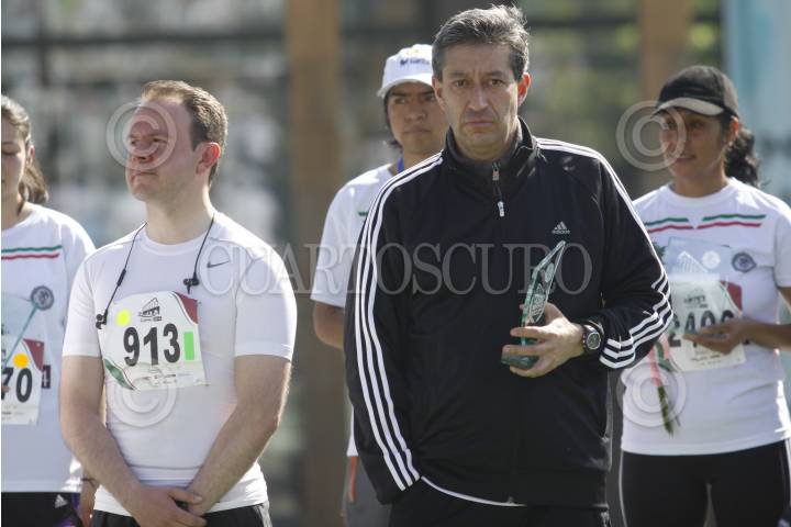 MÉXICO, D.F., 22MARZO 2014.- Roberto Miranda, Jefe del Estado Mayor y Enrique Peña Nieto, Presidente de México, encabezaron la carrera Molino del rey en el Bosque de Chapultepec. El Jefe del ejecutivo hizo en 53 minutos la carrera que organiza el Estado Mayor Presidencial; el año pasado hizo un tiempo de 54 minutos. En la imagen el Jefe del Ejecutivo se tomo la foto con los ganadores de las diferentes categorías. FOTO: MOISÉS PABLO /CUARTOSCURO.COM