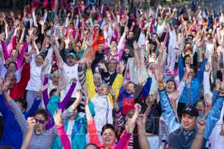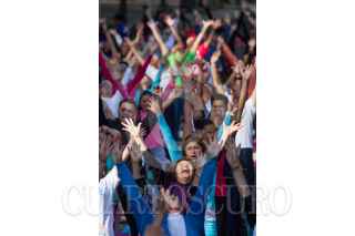 MÉXICO, D.F., 23MARZO2014.- En la glorieta de la Diana Cazadora se llevó a cabo una clase masiva de yoga de la risa, donde participaron decenas de personas de todas las edades. FOTO: ISAAC ESQUIVEL /CUARTOSCURO.COM