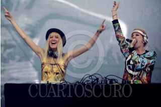 PAPANTLA, VERACRUZ, 24MARZO2014.- El duo de Dj's australianas 'Nervo' conformado por las gemelas Miriam y Olivia se presentaron en el parque Takilhsukut ante miles de fans durante la XV edición del festival internacional Cumbre Tajín. FOTO: FÉLIX MÁRQUEZ /CUARTOSCURO.COM