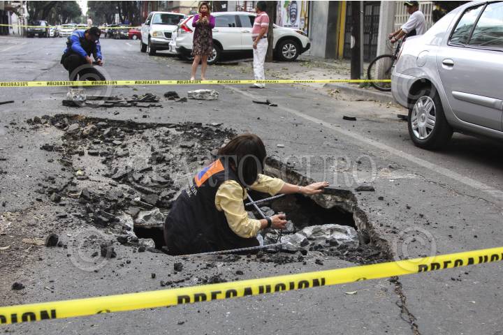 MÉXICO, D.F., 24MARZO214.- Personal de Protección Civil de la Delegación Cuauhtemoc, realiza trabajos de resguardo de un socavon que se registró en Rio Panuco entre Rio de la Plata y Circuito Interior. FOTO: SAÚL LÓPEZ /CUARTOSCURO.COM