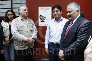 MÉXICO, D.F., 26MARZO2014.- Miguel Torruco, secretario de Turismo del Distrito Federal; Alejandro Fernandez, delegado en Cuauhtemoc y Dagoberto Rodríguez Barrera, Embajador de la República de Cuba durante la develación de una placa en memoria del guerrillero Ernesto "Che" Guevara en la calle de José Emparan No. 49 en la colonia Tabacalera. FOTO: RODOLFO ANGULO /CUARTOSCURO.COM