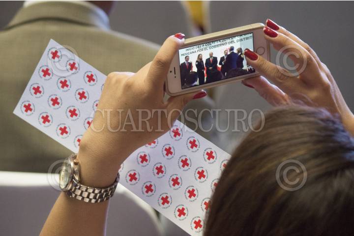 MÉXICO, DF., 28MARZO2014.- Miguel Ángel Mancera, jefe de gobierno capitalino, arrancó oficialmente la Colecta Nacional 2014 Cruz Roja Mexicana. Fernando Suinaga, director de la Cruz Roja Mexicana, acompañado de Armando Ahued Ortega, secretario de salud del DF., detalló que actualmente se cuenta con el servicio de 30 mil unidades ambulancias en toda la ciudad y que el 96 por ciento de lo acumulado en la colecta será lo destinado para los ciudadanos que padezcan cualquier tipo de emergencia; el otro 4 por ciento será utilizado en cuestiones administrativas. El jefe de gobierno instó a los elementos de su gabinete y a los 16 delegados para que realizaran su aportación de 500 pesos cada uno. FOTO: MARÍA JOSÉ MARTÍNEZ /CUARTOSCURO.COM