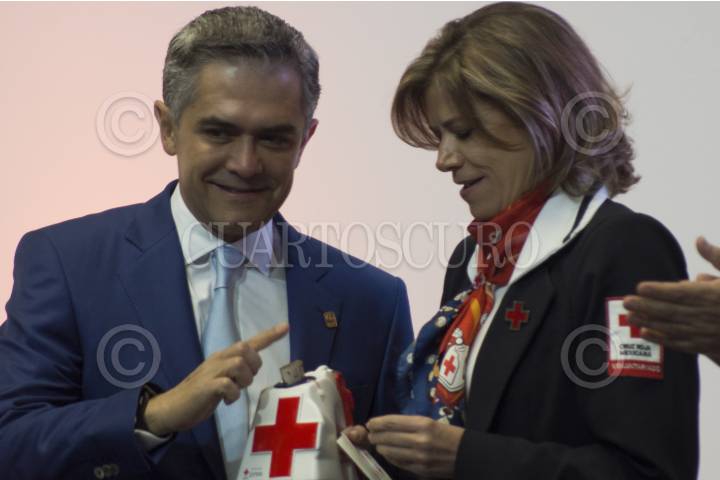 MÉXICO, DF., 28MARZO2014.- Miguel Ángel Mancera, jefe de gobierno capitalino, arrancó oficialmente la Colecta Nacional 2014 Cruz Roja Mexicana. Fernando Suinaga, director de la Cruz Roja Mexicana, acompañado de Armando Ahued Ortega, secretario de salud del DF., detalló que actualmente se cuenta con el servicio de 30 mil unidades ambulancias en toda la ciudad y que el 96 por ciento de lo acumulado en la colecta será lo destinado para los ciudadanos que padezcan cualquier tipo de emergencia; el otro 4 por ciento será utilizado en cuestiones administrativas. El jefe de gobierno instó a los elementos de su gabinete y a los 16 delegados para que realizaran su aportación de 500 pesos cada uno. FOTO: MARÍA JOSÉ MARTÍNEZ /CUARTOSCURO.COM