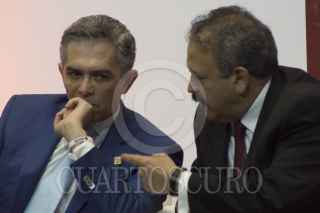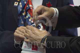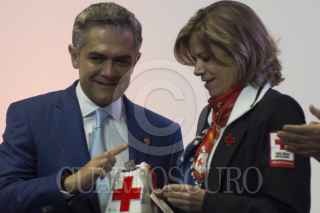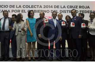 MÉXICO, DF., 28MARZO2014.- Miguel Ángel Mancera, jefe de gobierno capitalino, arrancó oficialmente la Colecta Nacional 2014 Cruz Roja Mexicana. Fernando Suinaga, director de la Cruz Roja Mexicana, acompañado de Armando Ahued Ortega, secretario de salud del DF., detalló que actualmente se cuenta con el servicio de 30 mil unidades ambulancias en toda la ciudad y que el 96 por ciento de lo acumulado en la colecta será lo destinado para los ciudadanos que padezcan cualquier tipo de emergencia; el otro 4 por ciento será utilizado en cuestiones administrativas. El jefe de gobierno instó a los elementos de su gabinete y a los 16 delegados para que realizaran su aportación de 500 pesos cada uno. FOTO: MARÍA JOSÉ MARTÍNEZ /CUARTOSCURO.COM
