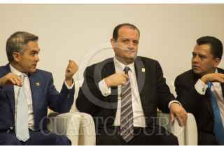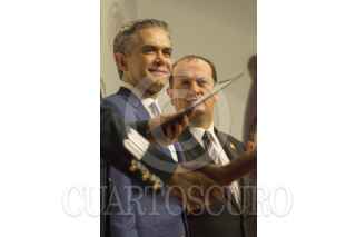 MÉXICO, DF., 28MARZO2014.- Miguel Ángel Mancera, jefe de gobierno capitalino, Rodolfo Ríos Garza, procurador de Justicia del DF., y Noé Sandoval, ex comandante de la cuarta región militar, otorgaron diplomas a quienes concluyeron el diplomado de "Sistema Acusatorio y sus implicaciones teórico-prácticas". FOTO: MARÍA JOSÉ MARTÍNEZ /CUARTOSCURO.COM