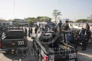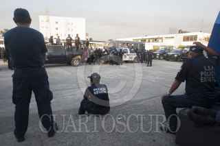 VILLAHERMOSA, TABASCO, 29MARZO2014.- Hoy se cumplen trece días del conflicto policial, el gobernador Arturo Núñez Jiménez lanzó un ultimátum al movimiento, en donde advierte que es mejor que los elementos policíacos que tienen tomadas las instalaciones de la Secretaría de Seguridad Pública en exigencia de la renuncia del general retirado Audomaro Martínez Zapata, que se pongan a realizar sus funciones o serán despedidos los siete mil manifestantes y crearan nuevos cuerpos de seguridad para población. Dos horas después dio su postura Isabelino León, quien encabeza el movimiento dejando en claro que aceptan el gobierno los despida y que sean liquidados conforme a derecho, ya que el gobierno tendría al menos que erogar cien millones de pesos para pagarles las liquidaciones, ademas de que tardarían por lo menos un año en formar a los nuevos cuerpos policíacos. FOTO: MARCO POLO GUZMÁN HERNÁNDEZ /CUARTOSCURO.COM