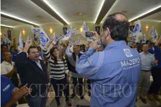 XALAPA, VERACRUZ, 30MARZO14.- Gustavo Madero, candidato a la dirigencia nacional del PAN, visitó la ciudad de Xalapa como parte de su campaña, acompañado por un sector panista en los que se destacaba la presencia de Miguel Ángel Yunes Linares y del Senador Fernando Yunes Márquez, quien aseguró que su candidato estuvo más pendiente de la pasada candidatura de Abel Cuevas a la presidencia municipal que el propio dirigente estatal Enrique Cambranis, quien apoya al candidato Ernesto Cordero en su aspiración a dirigir el partido blanquiazul. Los asistentes se retiraron en camiones que se encontraban cerca del salón donde se llevo a cabo el evento. FOTO: RUBÉN ESPINOSA / CUARTOSCURO.COM