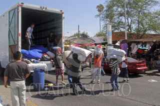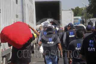GUADALAJARA, JALISCO, 01ABRIL2014.- Esta mañana se llevo a cabo un operativo en el tianguis que se ubica frente al Panteón de Mezquitan, en donde se oferta en su mayoría ropa Americana, dicho operativo fue encabezado por Autoridades Federales de la Secretaria de Administración Tributaria (SAT) Auditoria de Comercio Exterior, apoyados por policías del Estado, mismos que decomisaron toneladas de prendas de ropa proveniente de Estados Unidos. FOTO: FERNANDO CARRANZA GARCIA /CUARTOSCURO.COM