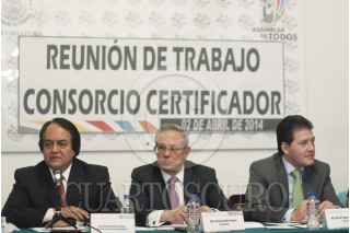 MÉXICO, D.F., 02ABRIL2014.- Fernando Espino Arévalo, líder del sindicato de trabajadores del Metro, durante la comparecencia del consorcio consultor que avalo las obras del la Línea 12 del Metro para que pudiera iniciar sus operaciones, hace un mes la operaciones de la misma fueron suspendidas parcialmente por fallas en un su tramo elevado. FOTO: MOISÉS PABLO /CUARTOSCURO.COM