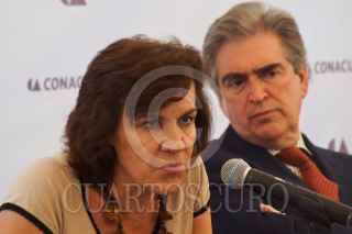 MÉXICO, DF., 02ABRIL2014.- Rafael Tovar y de Teresa, presidente del Consejo Nacional para la Cultura y las Artes (Conaculta) presentó, en compañía de la embajadora de Francia en México, Elizabeth Betan Delegue, el Festival Mano a Mano en donde a lo largo de un año se exhibirán en México más de 500 obras fotográficas de artistas mexicanos y franceses. Entre los fotógrafos expuestos se encuentra la obra de Desiré Charnay, Jules Michaud, Héctor García, Henri Cartier Bresson, Pía Elizondo, Patricia Lagarde y Victor Casales. La primera del ciclo de exposiciones será inaugurada el próximo 10 de abril en el Palacio de Bellas Artes. El Festival Mano a Mano pretende servir de puente entre las dos naciones en el marco del 70 Aniversario de la Creación del Instituto Francés de América Latina (IFAL) Y el 50 aniversario de la visita del presidente Charles De Gaulle a México. FOTO: MARÍA JOSÉ MARTÍNEZ /CUARTOSCURO.COM