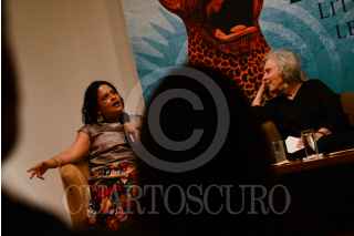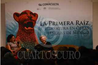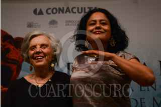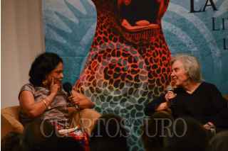 MÉXICO, D.F., 02ABRIL2014.- La escritora Elena Poniatowska platicó de manera pública con la poeta bilingue zapoteco-español, Natalia Toledo, esto en el marco del encuentro "La primera raíz, literatura en otras lenguas de México" el cual se llevó a cabo en el Palacio de Bellas Artes. FOTO: PEDRO ANZA /CUARTOSCURO.COM