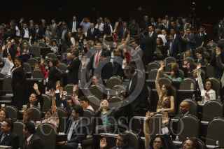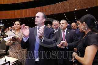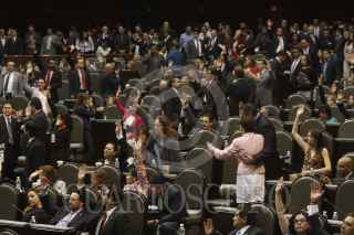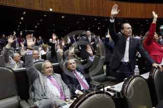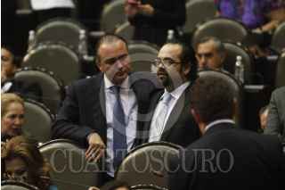 MÉXICO, D.F., 03ABRIL2014.- Los coordinadores Luis Alberto Villareal, PAN y Manlio Fabio Beltrones, PRI, durante la sesión en la cual se aprobaron los consejeros del Instituto Nacional Electoral durante la sesión en la Cámara de Diputados. FOTO: CUARTOSCURO.COM