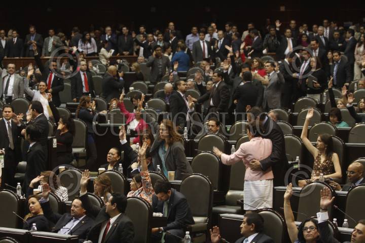 MÉXICO, D.F., 03ABRIL2014.- Los coordinadores Luis Alberto Villareal, PAN y Manlio Fabio Beltrones, PRI, durante la sesión en la cual se aprobaron los consejeros del Instituto Nacional Electoral durante la sesión en la Cámara de Diputados. FOTO: CUARTOSCURO.COM