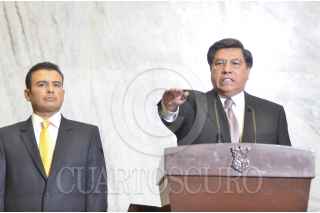 MORELIA, MICHOACÁN, 04ABRIL2014.- Jesús Reyna en fotos de archivo el día que tomo protesta como gobernador interino. El actual secretario de gobierno de Michoacán es acusado por la PGR por tener vínculos con el crimen organizado. FOTO: ALAN ORTEGA /CUARTOSCURO.COM