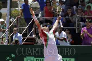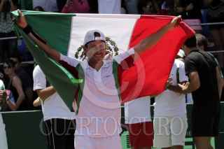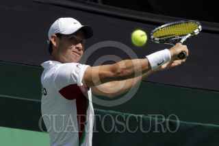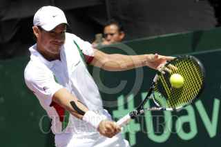 PUEBLA, PUEBLA, 06ABRIL2014.- El mexicano Miguel Ángel Reyes Varela derrotó en cuatro sets al peruano Duilio Beretta en el cuarto partido de la semifinal del grupo 2 de América de la Copa Davis que se disputa en el Club Britania Zavaleta de Puebla. FOTO: HILDA RÍOS/ CUARTOSCURO.COM