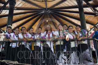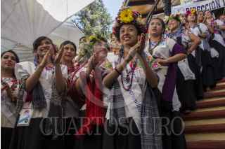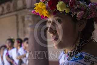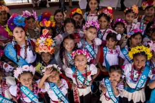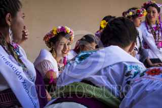MEXICO, D.F., 06ABRIL2014.- Hoy se llevó a cabo la inauguración de la CCXXIX Fiesta de la Flor Más Bella del Ejido, en la delegación Xochimilco, en la cual participan jóvenes de distintas demarcaciones del Distrito Federal, quienes contienden por ser declaradas la flor que da nombre a esta tradicional fiesta. Los orígenes de esta fiesta se remontan 229 años atrás, debido a la intención de los campesinos de resaltar la belleza de las mujeres que habitaban los ejidos de la Ciudad de México, de los cuales aún sobreviven algunas zonas. En el marco de la celebración se presentaron distintas actividades y bailes tradicionales y folklóricos. En la imagen, las concursantes que este año concursan por ser las Flor más Bella del Ejido. FOTO: DAVID POLO /CUARTOSCURO.COM