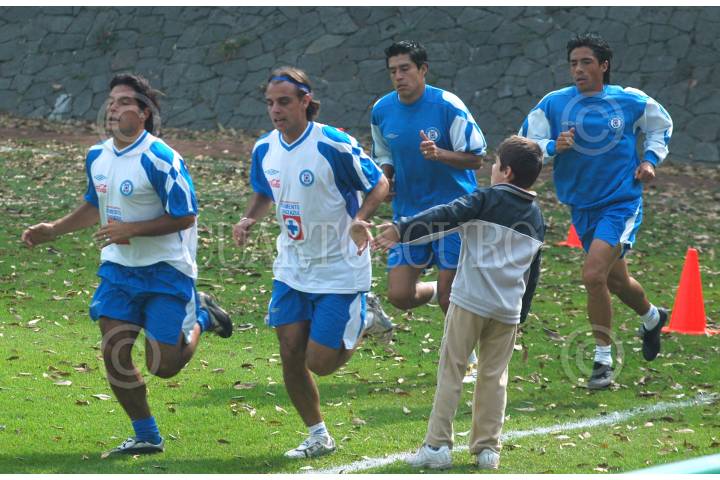MÉXICO, D.F. 19DICIEMBRE2005.- Isaac Mizrahi saluda a César "Chelito" Delgado durante la presentación donde se hizo oficial su integración como nuevo director técnico de la máquina del Cruz Azul. FOTO: Iván Stephens/CUARTOSCURO.COM