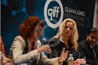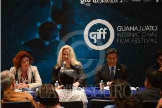 MÉXICO, D.F., 08ABRIL2014.- Beata Wojna, embajadora de Polonia en México, Sarah Hoch, directora ejecutiva del Guanajuato International Film Festival, y Fernando Olivera, secretario de turismo de Guanajuato, durante la conferencia que ofrecieron en el Museo de Arte Popular, en donde invitaron a jóvenes amantes y estudiantes de cine a participar en dicho evento. FOTO: PEDRO ANZA /CUARTOSCURO.COM