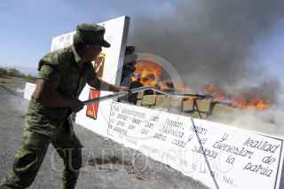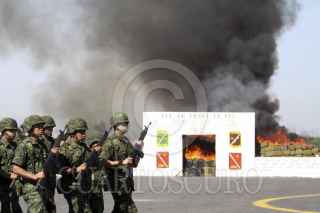 MONTERREY, NUEVO LEÓN, 08ABRIL2014.- La Secretaría de Defensa Nacional (Sedena) incineró, en conjunto con la Procuraduría General de la República, más de 17.5 toneladas de enervantes en la séptima zona militar. Las substancias quemadas fueron cocaína, heroína, metanfetamina, entre otras. FOTO: GABRIELA PÉREZ MONTIEL / CUARTOSCURO.COM