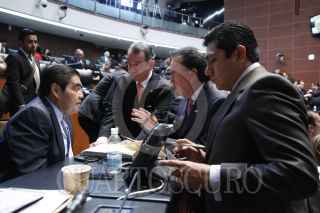 MÉXICO, D.F., 08ABRIL2014.- Los senadores Dolores Padierna, Ángel Benjamín Robles, Manuel Camacho Solís, Miguel Barbosa, coordinador PRD, Emilio Gamboa Patrón, coordinador del PRI y Jorge Luis Preciado, coordinador del PAN, durante la sesión en la Cámara de Senadores. FOTO: CUARTOSCURO.COM