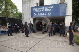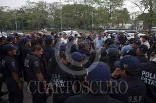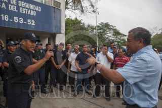 VILLAHERMOSA, TABASCO, 08ABRIL2014.- Elementos de la Policía Estatal adscritos a la Secretaría de Seguridad Pública impidieron que el general retirado Audomaro Martínez Zapata pudiera reinstalar a mandos medios de esta corporación policíaca, en donde dijeron que no recibirán ordenes de jefes inmediatos corruptos. Los sucesos de la rebelión del pelotón acontecieron en las bases operativas tres y ocho, en donde manifestaron realizarían un nuevo paro laboral si Martínez Zapata no desiste; hubo altercados y señalamientos de policías de frente al general retirado. FOTO: MARCO POLO GUZMÁN HERNÁNDEZ /CUARTOSCURO.COM