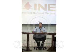 VILLAHERMOSA, TABASCO, 08ABRIL2014.- Jesús Lule Ortega, Vocal Ejecutivo de la Junta local del Instituto Nacional Electoral, dio a conocer en la sala audiovisual de dicha dependencia electoral, explica la transformación de lo que fuera el IFE, por lo que comenzaran las modificaciones en membretes y documentos oficiales. Así mismo indico que las identificaciones electorales con las antiguas siglas continuaran vigentes e irán desapareciendo paulatinamente, ahí también se tomo protesta a los demás vocales. FOTO: MARCO POLO GUZMÁN HERNÁNDEZ /CUARTOSCURO.COM