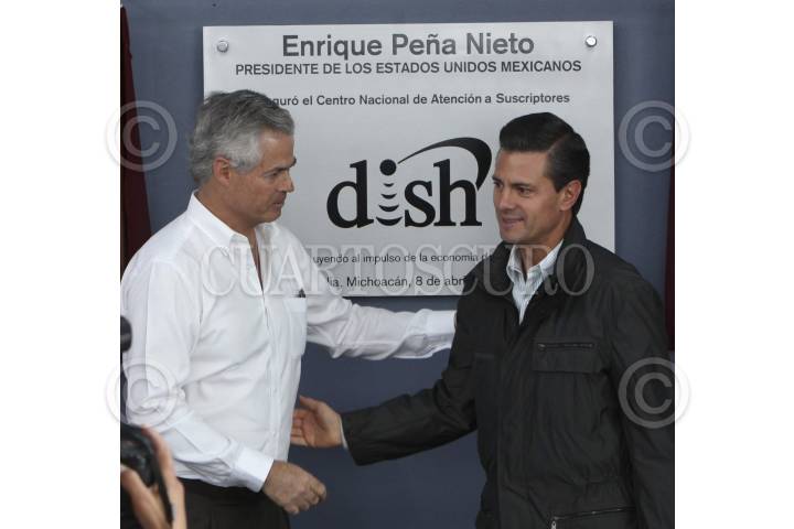 MORELIA, MICHOACÁN, 08ABRIL2014.- Enrique Peña Nieto, presidente de México, acompañado Joaquín Vargas Guajardo, presidente del Consejo de Administración de MVS, durante la inauguración del centro nacional de atención a suscriptores de DISH. FOTO PRESIDENCIA /CUARTOSCURO.COM