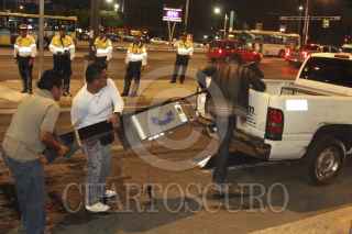 MÉXICO, D.F., 08ABRIL2014.- Un operativo de recuperación de espacios encabezada por autoridades de la delegación ocasiono una trifulca afuera del metro Hidalgo en donde comerciantes informales se opusieron a que se llevará sus mercancías, el lugar fue resguardado por granaderos de la SSPDF, mientras las autoridades cargaban hasta con los teléfonos públicos. FOTO: SAÚL LÓPEZ /CUARTOSCURO.COM
