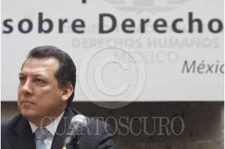MÉXICO, D.F., 09ABRIL2014.- Raúl Plascecia, presidente de la Comisión Nacional de Derechos Humanos, durante el anuncio de la primera competencia nacional de debate sobre derechos humanos, en la sede de esta comisión que se ubica en la calle de Cuba en el centro histórico. FOTO: MOISÉS PABLO /CUARTOSCURO.COM