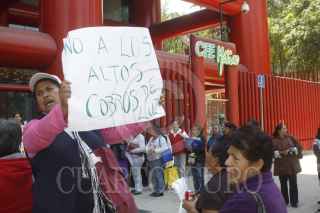 MÉXICO, D.F., 09ABRIL2014.- Ciudadanos inconformes por los altos cobros de la luz por parte de la Comisión Federal Electricidad se manifestaron en las oficinas de la CFE ubicadas en Reforma casi esquina Insurgentes, los inconformes bloquearon por breves momentos la avenida Reforma para presionar que los atendiera una autoridad y así poder resolver su problemática. FOTO: MOISÉS PABLO /CUARTOSCURO.COM
