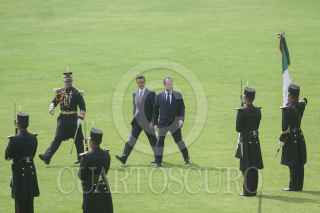 MÉXICO, DF., 10ABRIL2014. Francois Holande, Presidente de Francia y Enrique Peña Nieto, Presidente de México, pasaron revista a la guardia de honor con motivo de la visita del mandatario galo en el Campo Marte. FOTO: MOISÉS PABLO /CUARTOSCURO.COM