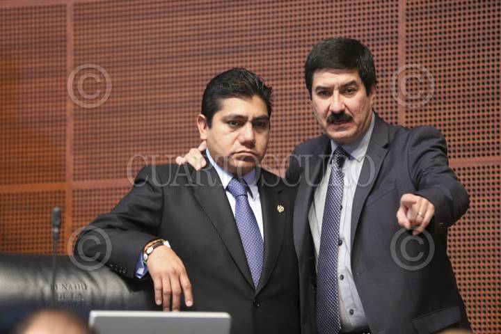 MÉXICO, DF., 10ABRIL2014.- Los senadores panistas Jorge Luis Preciado y Javier Corral durante la sesión en la Cámara de Senadores. Los panistas amagan con salirse de las negociaciones de salirse de las negociaciones de la reforma político-electoral, telecomunicaciones y Competencia Económica. FOTO: CUARTOSCURO.COM