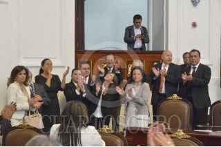 MÉXICO, DF., 10ABRIL2014.- En sesión solemne en la Asamblea Legislativa del DF se develaron los nombres de José Revueltas, Efrain Huerta y Octavio Paz por el centenario de su natalicio. La develación estuvó a cargo del diputado perredista Manuel Granados. FOTO: CUARTOSCURO.COM