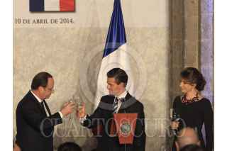 MÉXICO, D.F., 10ABRIL2014.- El Presidente de Francia Fracois Hollande cenó con su homologo mexicano Enrique Peña Nieto, en el Palacio nacional con motivo de la visita de estado que el galo realiza en el país. Al Jefe del Ejecutivo de México lo acompaño Angelica Rivera. FOTO: CUARTOSCURO.COM