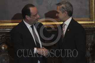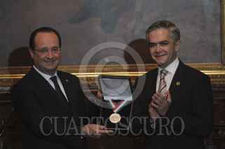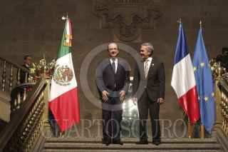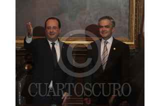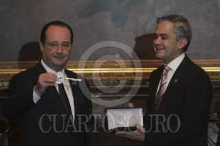 MÉXICO, D.F., 11ABRIL2014.- Francois Hollande, Presidente de Francia recibió por parte del Jefe de Gobierno Miguel Ángel Mancera las llaves de la ciudad como huésped distinguido, la ceremonia se llevó a cabo en el salón de Cabildos del Antiguo Palacio del Ayuntamiento. FOTO: MOISÉS PABLO /CUARTOSCURO.COM