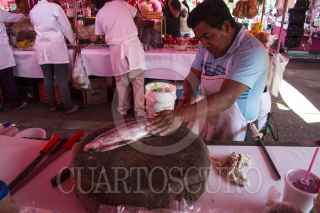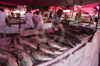 MEXICO, D.F., 12ABRIL2014.- La venta de pescados y mariscos en la ciudad se ha incrementado en esta temporada debido a la la celebración católica de la Cuaresma, durante la cual los adeptos a esta religión no deben consumir carnes rojas. Aunque el consumo promedio de pescado por parte de los mexicanos no rebasa los 10 kilos al año per capita, en estas fechas la demanda hace que vendedores y distribuidores de algunos mercados, como la Nueva Viga, trabajen hasta 15 horas diarias. FOTO: DAVID POLO /CUARTOSCURO.COM