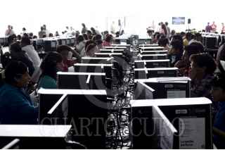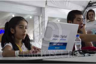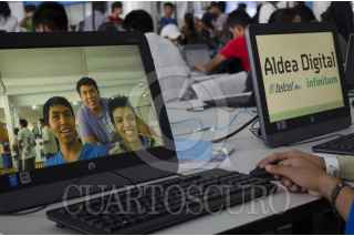 MÉXICO, DF., 12ABRIL2014.- Ayer inició la quinta edición de la Aldea Digital, uno de los eventos tecnológicos más grandes a nivel mundial. El programa incluye conferencias, más de 40 talleres de aprendizaje digital, préstamo de computadoras personales y tablets y la posbilidad de navegar por Internet sin tiempo límite gracias a la instalación de cableado de 125 kilómetros sobre la plancha del Zócalo. La Aldea Digital es de acceso gratuito y estará abierta al público hasta el 27 de abril. El programa incluirá una conferencia de Steve Wozniak, cofundador de Apple. FOTO: MARÍA JOSÉ MARTÍNEZ /CUARTOSCURO.COM