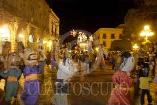 QUERETARO, QUERETARO 20 DICIEMBRE 2005.-Recorrido de las tradicionales Mojigangas y el ¨Carro de la Posada¨ por las principales calles del centro histórico de la ciudad de Querétaro durante esta temporada navideña. FOTO: Fabiola Mapy/CUARTOSCURO.COM