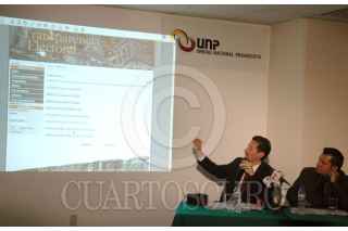 MÉXICO, D.F. 20DICIEMBRE2005.- Mao Sáenz Culebro, coordinador nacional de Unidad nacional Progresista y Edgar Aguilera garcía, director de relaciones públicas de la organización Unidad Nacional Progresista, realizaron la presentación del portal de internet de su organización. FOTO: Iván Stephens/CUARTOSCURO.COM