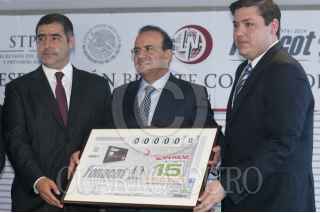 MÉXICO, D.F., 14ABRIL2014.- César Alberto Martínez Baranda, Director General del Instituto Fonacot, durante la presentación del billete de la lotería por motivo del 40 aniversario de Fonacot. FOTO: DIEGO SIMÓN SÁNCHEZ /CUARTOSCURO.COM