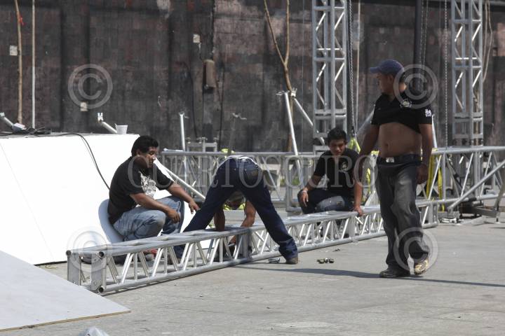 MÉXICO, D.F., 14ABRIL2014.- Trabajadores de la delegación Iztapalapa y de productoras particulares, afinan los preparativos por los ocho barrios y el cerro de la estrella para la 171 representación de la Pasión de Cristo. FOTO: SAÚL LÓPEZ /CUARTOSCURO.COM