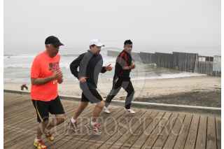 TIJUANA, BAJA CALIFORNIA, 15ABRIL2014.- Ernesto Cordero Arroyo, realizó junto con militantes panistas una carrera por el malecón de la ciudad fronteriza como parte de su gira de campaña por el estado. FOTO: CUARTOSCURO.COM